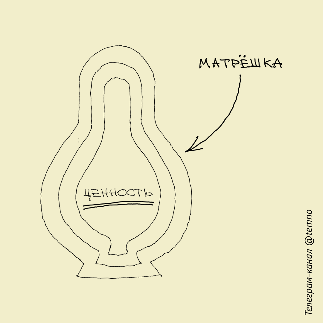7А ты можешь нарисовать текущие ценности продукта в виде такой матрёшки? Если да, то у тебя появилась готовая стратегия продуктового маркетинга!