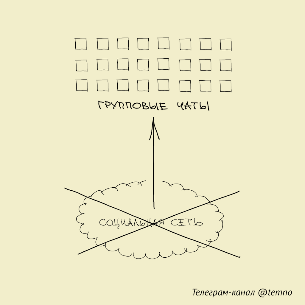 2Однако это не означает, что молодёжь перестала общаться в интернете 😉 Просто акцент их активности начал смещаться в групповые чаты — где они общаются исключительно со своими знакомыми. Кстати, даже в среднем один человек сейчас состоит почти в 100 групповых чатах 😮