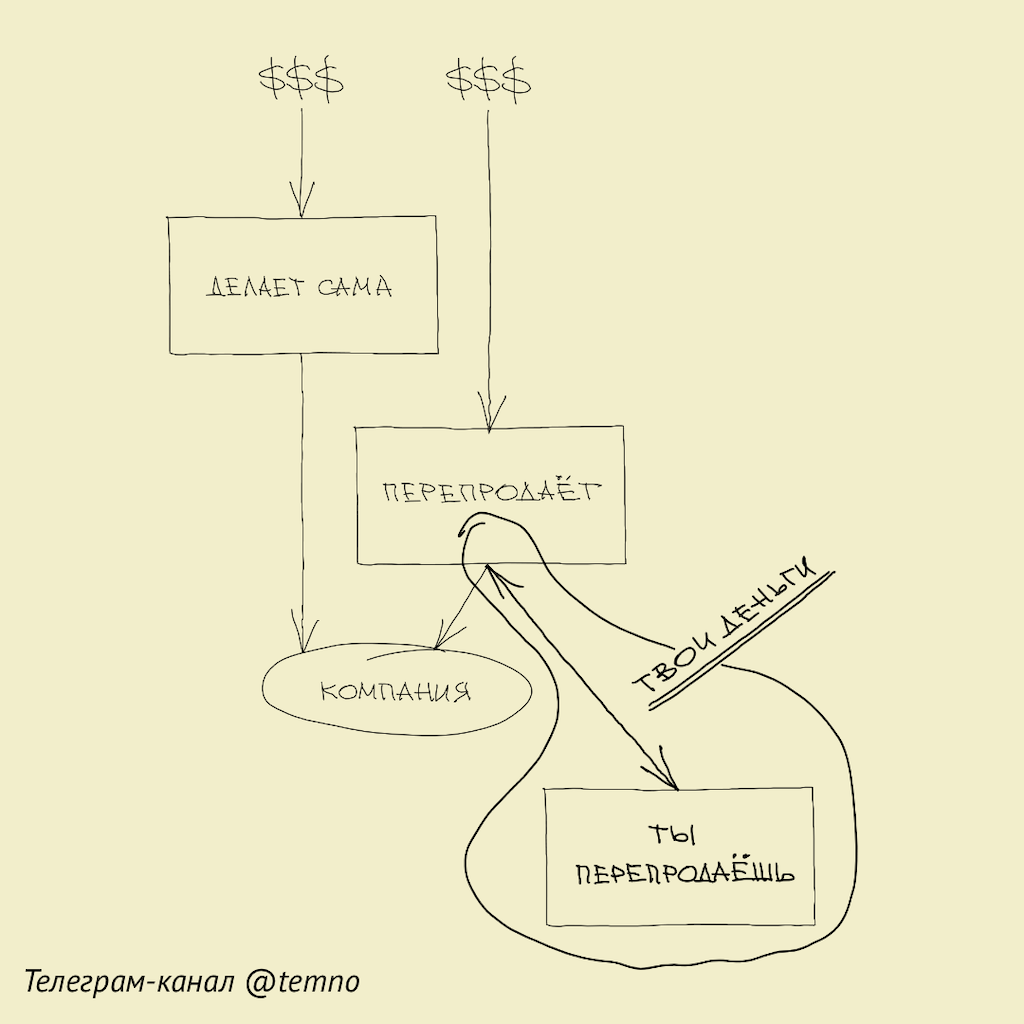 2«Кто-то другой» — это компании с большим количеством клиентов, на которых они могли бы дополнительно зарабатывать. Причём тем способом, которым они сами углублённо заниматься не хотят, потому что для них это лишнее отвлечение. Но если ты придёшь к ним с готовым решением, которое они смогут быстро и просто себе встроить — то почему бы и нет 💪