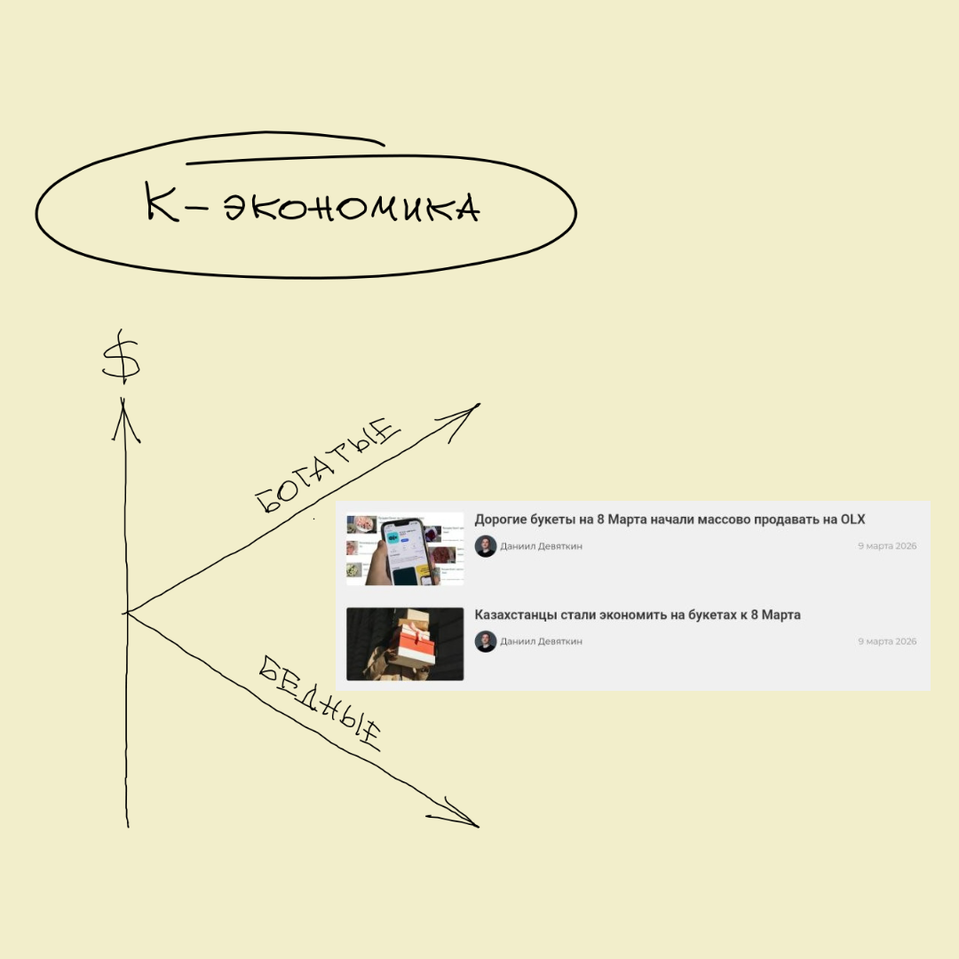 2Фишка в том, что эта экономика похожа на букву «К» — где богатые богатеют, а бедные беднеют ☹️ Но отсюда следует очень важное для стартапов следствие!