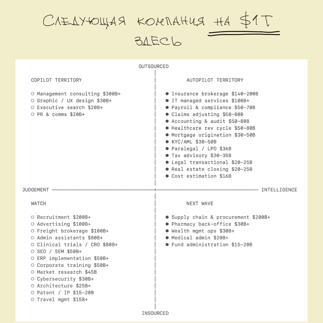 5Список таких больших аутсорсинговых рынков можно посмотреть в статье партнёра фонда Sequoia Capital: https://sequoiacap.com/article/services-the-new-software/